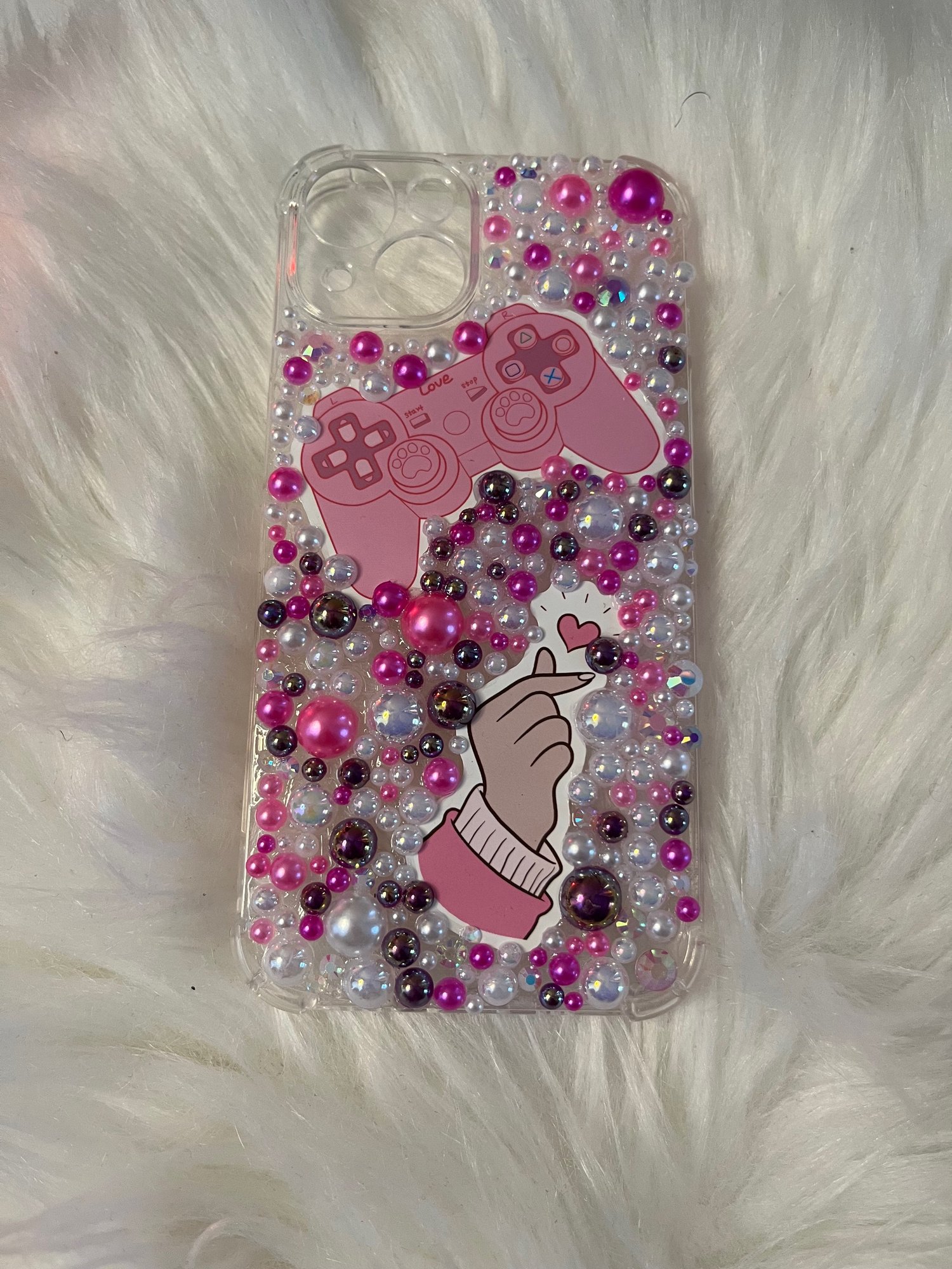 Hand crafted iPhone cases with rhinestones and faux pearls. (Keep from getting wet may cause the color of the rhinestones and pearls to fade faster.)